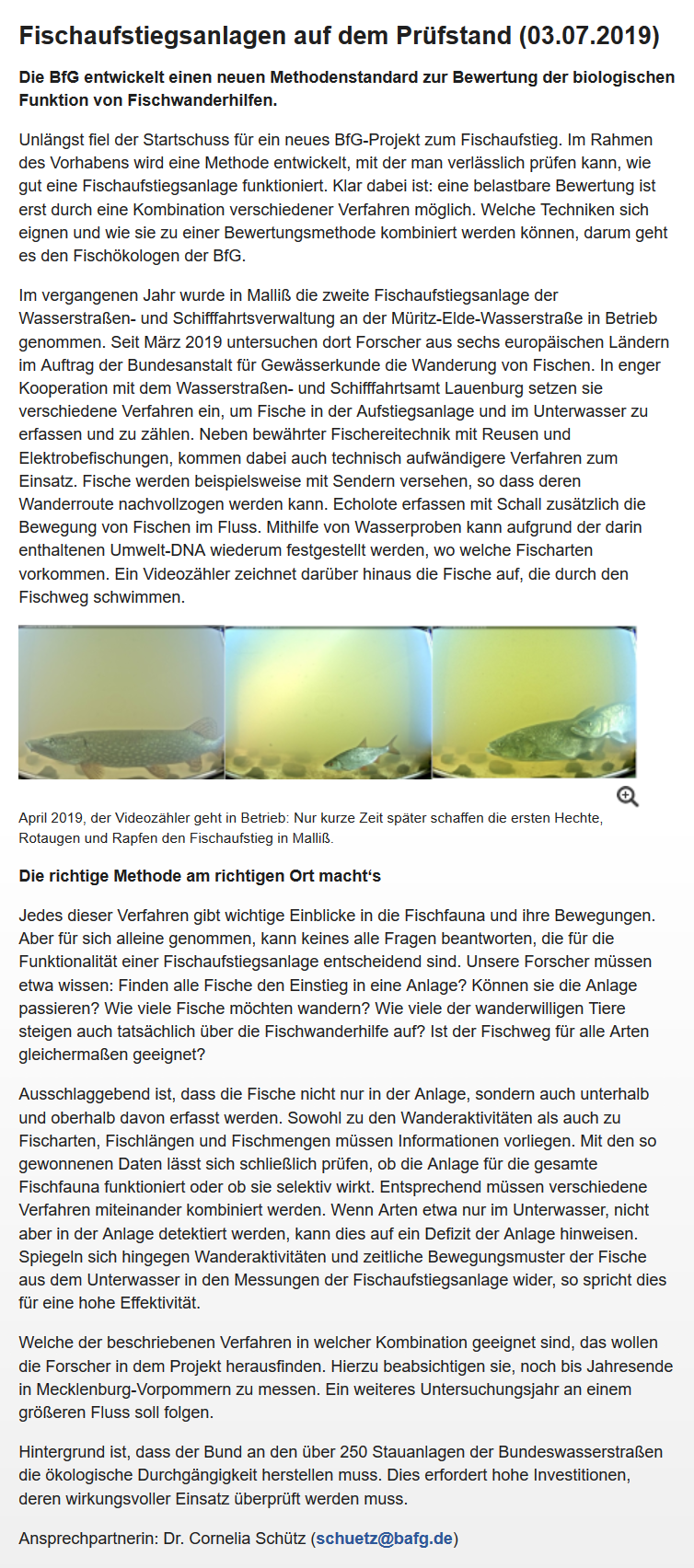 FISCHAUFSTIEGSANLAGEN AUF DEM PRÜFSTAND (BfG)